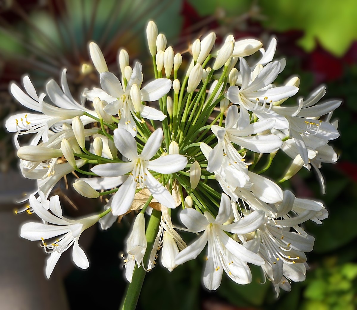 Clusters of crisp white flowers on long stems with semi-evergreen strappy foliage. Great addition to the front of a border or ideal in a pot. Plant in free draining soil in sun. Protect in winter from severe frosts. Height & spread 50cm [2ft],
