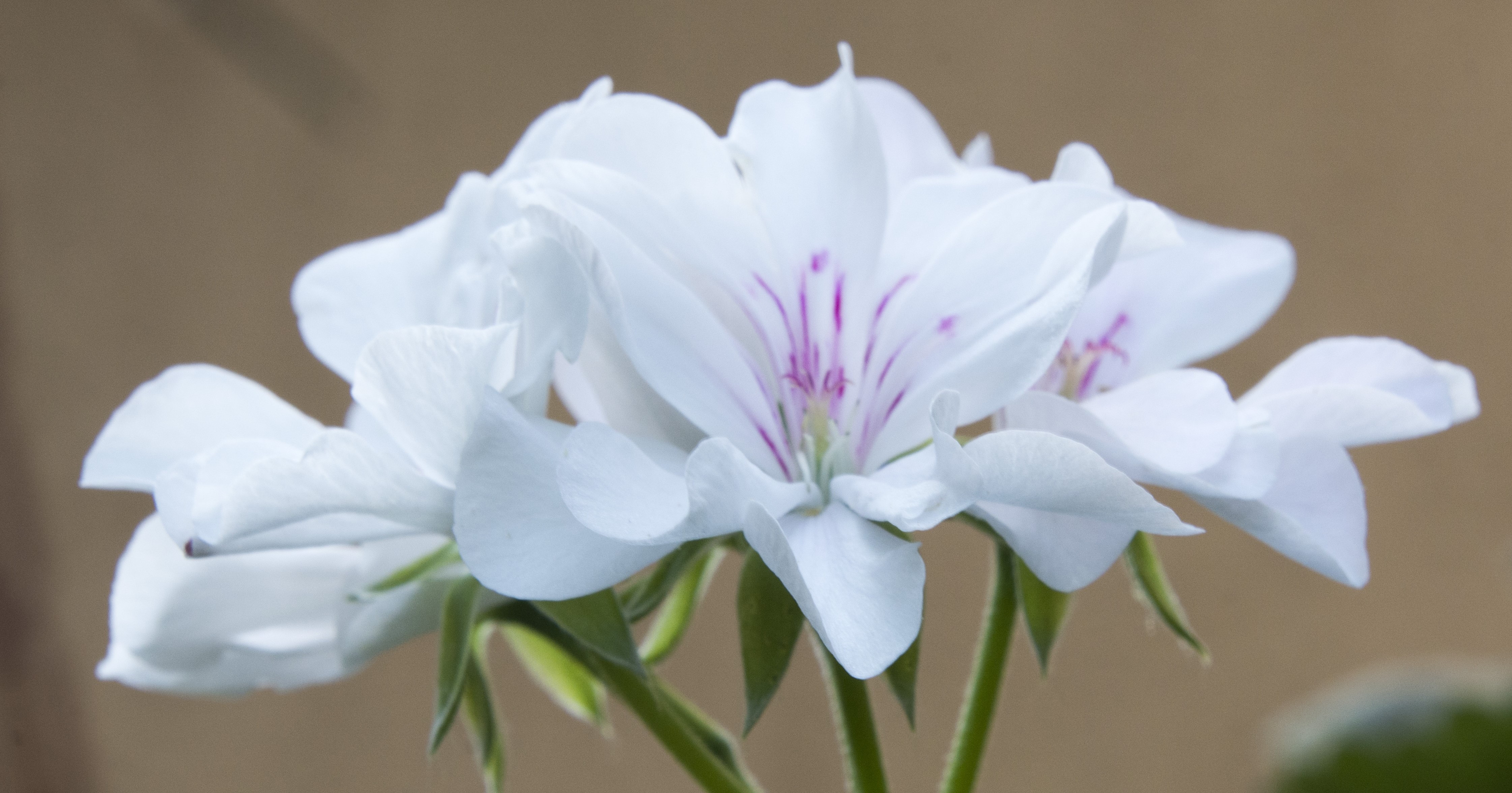 Double white flowers with subtle purple veining and a purple centre. Blooms from June-August. Loved by pollinators. Finely cut mid-green leaves. Grow in sun or light shade in ordinary soil. Height 60cm [2.5ft] spread 30cm [1ft].
