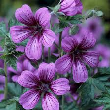 Saucer shaped, mid-pink flowers with a dark purple eye above the dark green foliage. Blooms Jun-Sept. Mound forming & easy to grow. Attractive to pollinators. Grow in any soil but wet,in sun or light shade. Height & spread up to 1.5ft [50cm]