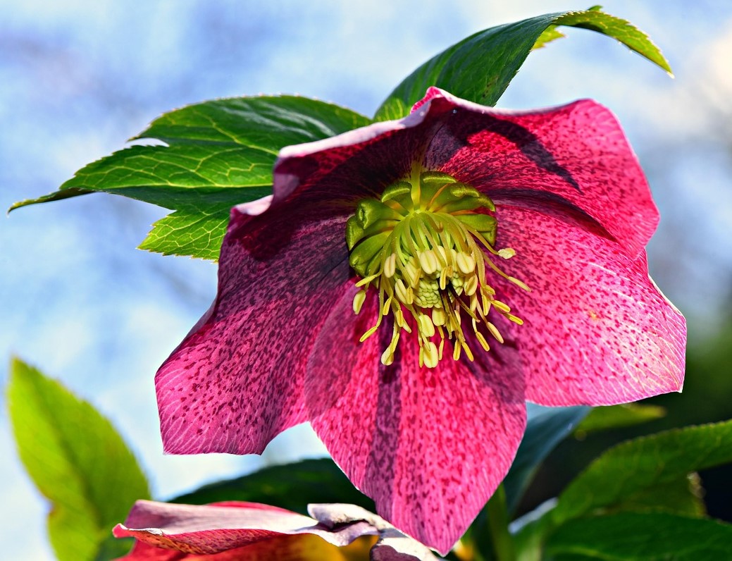 Dozens of plum red flowers from Oct-Apr. Pollinator friendly. Evergreen foliage. Plant in ordinary soil in sun/part shade in ordinary soil. Also does well in pots. Remove old leaves as flowers emerge to show them off better. Height 50cm [2.5ft] spread 45cm [18"].