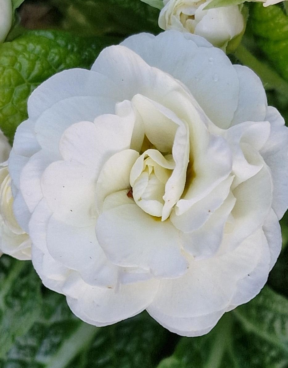 Double white flowers from Mar-May. Fuly hardy perennial primrose. Leaves & flowers edible. Ideal in pots or front of border in some shade with moist well drained soil. Height & spread 20cm [8"]