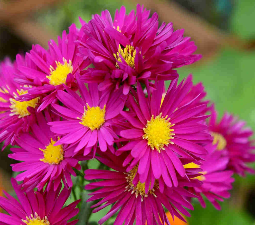 Semi-double, magenta-red flowers with a golden yellow centre in late summer. Attractive to pollinators. Good cut flower. Grow in sun in well drained soil. Height 70cm [2.5ft] spread 60cm [2ft]